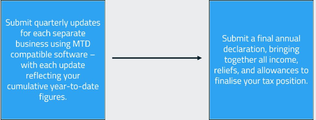 - Quarterly Updates: Submit a quarterly summary of income and expenses to HMRC via your software.